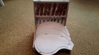 Coffret à déjeuner en bois comprenant : 4 planches à découper en bois 4 couteaux 4 fourchettes Longueur : 32 cm Largeur ; 25.5 centimètres Hauteur : 10 centimètres