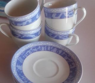 Vends service à café vintage Loucky Sabina Tchécoslovaquie Porcelaine Objet rare 6 tasses avec soucoupe (diamètre 4 cm) Pot à lait Sucrier Cafetière