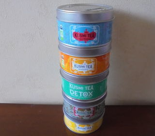 Petites boites, en métal, de la marque originale "Kusmi Tea", toutes décorées et différentes, modèle 25 g, dimentions : diamètre 6,5 cm et hauteur 4 cm, seule la boite grise