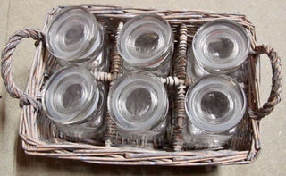 Très jolis pots en grès de couleur bleue vernissée, alimentaires, idéaux pour faire des yaourts "maison", dessous et base de la couleur du grès, poids : 198 g, dimensions :