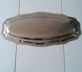 PLAT DE SERVICE POUR POISSONS OU D'AUTRES CHOSES EN INOX. SERVI PEU DE FOIS. AUX DIMENSIONS DE 60 CENTIMETRES DE LONGUEUR ET DE 28 CENTIMETRES DE LARGEUR.