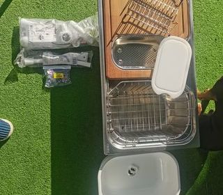 Évier état neuf 1 cuve avec le système de vidage encore dans son emballage d'origine. Accessoires : passoire, égouttoir, cuvette adaptée, place de découpe. Jamais installé. Enlè