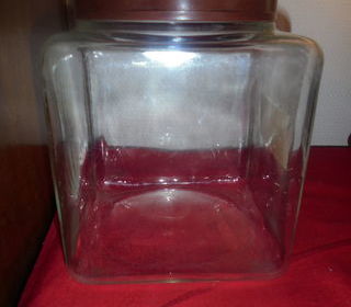 pot en verre et couvercle en bakélite , 20cm de haut , 15 cm de large, envoie possible