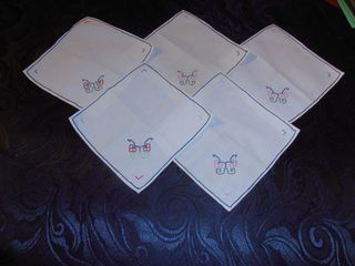 Ensemble composé de 5 serviettes à thé, brodées sur tout le tour et papillon brodé sur le côté, 2 couleurs de broderies différentes, véritables broderies, peuvent aussi servir