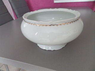 saladier blanc avec liseré doré en porcelaine de Sologne