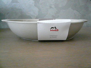 Plat à four (à gratin) en céramique Marque Staub ? Dimensions : 23 x 33,5cm x 6cm de hauteur Revêtement émaillé de qualité. Convient au lave-vaisselle, au four et au four-micro-o