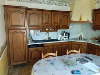 Vends meubles de cuisine, portes en chêne massif, comprenant une colonne frigo avec placard au dessus, placard lave vaisselle plus sous évier,un meuble d'angle compris 2 plateaux t