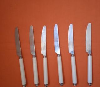 Couteaux inox neufs lave-vaisselle La Table d'Albert _ Jamais utilisés _ Couteaux élégants et raffinés _ Lames effet miroir _ Manches blancs _ Longueur totale : 21, 50 cm