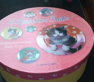 6 ASSIETTES EN PORCELAINE DECOR CHATS DANS SON EMBALLAGE