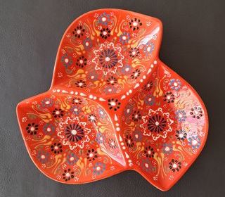 plateau apéritif en céramique turque orange peint et decoré à la main aucune ébréchure ou fissure, état impeccable, jamais servi 22x22 cm hauteur 3 cm