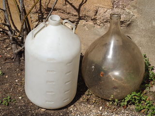 dame jeanne en verre a 30 € ou dame jeanne en plastique a 5 € pour la fabrication du vin de fruits, cidre etc.