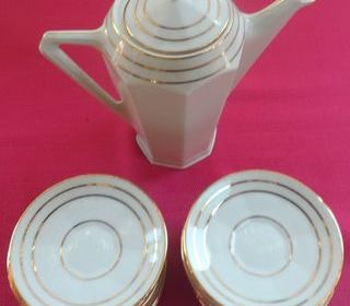 lot set de 4 assiettes à dessert coupelles en verre bleu blanc et or décoration végétale et étoilé signé Fragonard neuves diamètre 12,5 cm hauteur 1,5 cm