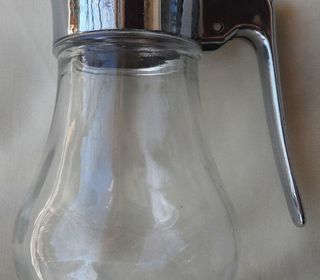 Verseur à miel neuf sans sa boite d'origine Diamètre 8 centimètres du bombé du verre à la poignée chromée Hauteur 11,5 centimètres Envoi en France Métropolitaine par mondial rel