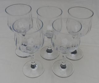 5 verres à pieds Hauteur 16 cm - Diamètre de la bouche et du pied 6,5 cm Ce sont des objets neufs vintage n'ayant jamais servi stockés dans 1 placard depuis de nombreuses années