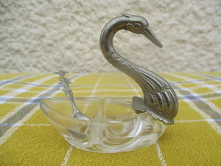 Salière et poivrière en forme de cygne avec sa p'tite cuillère assortie : * Marque : Baudet France (Voir Photo n° 2) * Matière... Compartiments en plexiglas et le Cygne est en