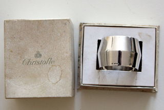 Rond de serviette Art Deco CHRISTOFLE métal argenté hauteur 3.5 cm diamètre int 4.5 cm poids 50 grs traces d'usage normales boite état moyen Envoi possible RMP métro Coren
