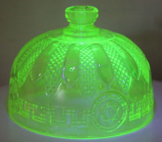 Cloche à fromages en verre ouraline , Uranium Glass diamètre 16 cm hauteur 12 cm inclusions et bulles normales (verre moulé) Envoi possible Rmp metro Corentin Celton