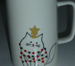 prix ferme sans négociation possible : aucune réponse ne sera faite aux demandes de baisse de prix Grand mug blanc avec motif chat de Noel : guirlandes et étoile dorée Monoprix