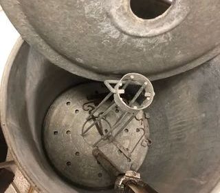 Ensemble de stérilisation complet. Brûleurs trois feux en fonte très stable. Pas de rouille dans le stérilisateur. Pour info le tuyau de gaz est à changer. Pas d'envoi, liv