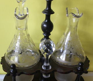 Huilier ancien complet Napoléon III verre gravé bouchons carafes diamant Remise métro Corentin Celton Envoi possible