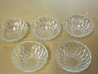 Cinq coupes à fruits sans pieds Dimensions :110 mm Hauteur :40 mm Très bon état Prix 10 € les cinq coupes Vente de l'ensemble