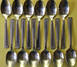 Cuillères à entremets art déco métal argenté lot de 12 ayant été peu utilisées long 17.5 cm Envoi possible RMP métro Corentin Celton