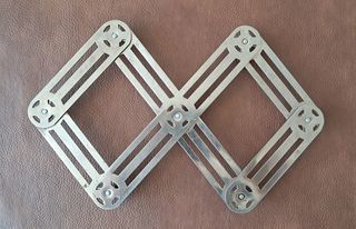 dessous de plat en métal métallique style vintage pliable dépliable aucune déformation, petites traces d'oxydation longueur maxi 47x7 cm longueur plié 22x11 cm