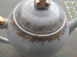 1 service à thé blanc orné de motifs dorés à l'or fin, en véritable porcelaine sélection France, sans les tasses et soutasses comprenant : 1 théière avec couvercle contenant un p