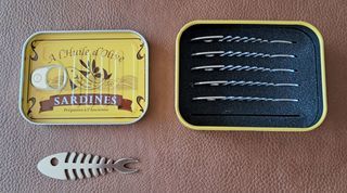 Coffret avec 2 pots à épices sur un plateau inox Les objets sont en bon état le coffret porte des traces d'usure regardez bien les photos Dimension du coffret: Longueur 19 cent