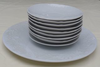 Ensemble de 9 petites assiettes et 1 plat Le plat diamètre 26,5 cm en porcelaine de Royal Limoges France Les assiettes diamètre 14,5 cm en porcelaine Bavaria Schuman Arzberg Ge