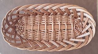 panier à pain panière corbeille en osier vernis état impeccable 2 diamètres de brin, un plus épais pour la base, un plus fin pour les rebords longueur 36 cm largeur 18