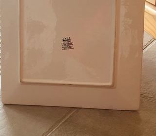 9 assiettes carrées blanche, de la Maison du Monde. Jamais servies. A prendre sur place (Narbonne). Sur les 15 qui étaient à vendre, il m'en reste 9. Dim : 26 x 26
