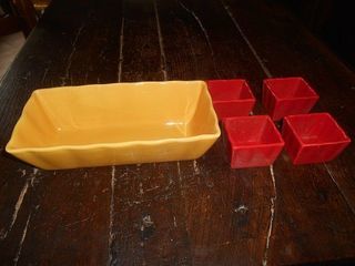 VENDS UN ENSEMBLE A GATEAUX NEUF comprenant un moule à cake ou gateaux 26*14*8 cm orange et 6 ramequins rouge 6,5*7 7 € envoi possible port en sus paiement virement ou pa