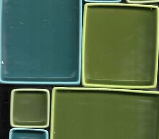 VENDS 1 plateau bois clair comprenant 2 ramequins en céramique VERT - 1 BLEU - 4 petits godets 2 vert et 2 bleu vendu 2.50 € paiement paypal ou virement envoi possible po