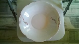 Plat en faïence pour service Excellent etat Numérote 1064 29 cm de diamètre 10 cm de haut Blanc avec dessin de fleurs Envoie dans toute la France par Mondial Rela