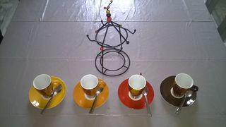 Soucoupes et Tasses Excellent etat Ancienne Avec sigle en dessous Couleur rouge et or avec fleurs Envoie dans toute la France par Mondial Relay ou autres frais de po