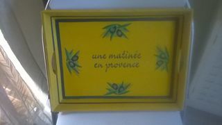 Plat de service provençale Excellent etat En bois Couleur jaune Provence Dessin d olive 40 cm de long 30 cm de large Envoie dans toute la France par Mondial Relay fr