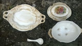 Soupière en Faïence Année 1950 44 cm de long 27 cm de haut 6 kg Avec louche Nettoyé et propre Excellent Etat Envoie dans toute la France par Mondial Relay ou a