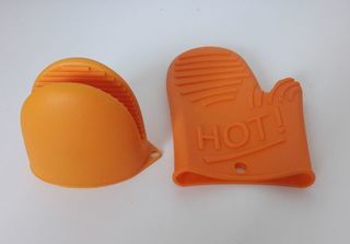2 Gants en silicone orange Vendu uniquement par lot Dimensions Longueur grand gant 21.5 cm Longueur petit gant 10 cm Frais d'expédition de 4.42 € par la poste en lettre suivie