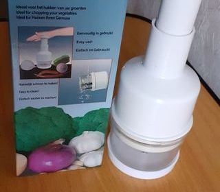 Vends un hâchoir à légumes manuel dans son emballage, servi 1 fois. Dimensions : 23 cm X 9 cm.