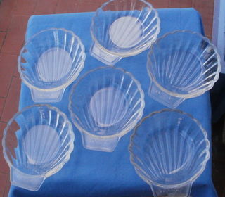 n ensemble composé de six ramequins qui ont la forme d'une coquille Saint Jacques. Ils sont en verre transparent et prévu pour aller au four. Sont ronds avec un rebord po