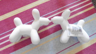 Lot de deux pots blancs en céramique en forme de chiens, destinés à contenir du sel et du poivre.