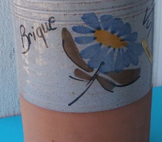 BRIQUE à VIN ou RAFRAICHISSEUR à VIN en terre cuite, motif paquerette bleue, fait main C'est une brique à vin mais vous pouvez vous en servir pour une autre fonction dans la cui