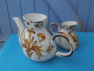 Lot en parfait état comprenant - cafetiere (hauteur 16.5 cm) - pot à lait (hauteur 11.5 cm) Estampillé Quimper Keraluc Envoi par colis, poids entre 2 et 3 kilos ref c2