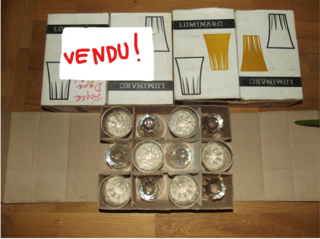 verres à vin "vintage" 10 cl (gobelets prestige 9) Luminarc, en très bon état. hauteur d'un verre : 8 cm. Boîtes de 12 verres de 10 cl + 1 verre gratuit : 6 euros Reste 2 bo