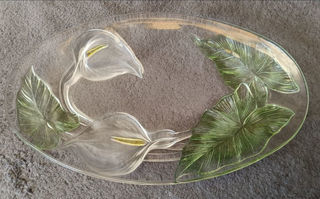 Plat ovale Cristal d'Arques Luminarc décor Arum Arome Fleur Floral Longueur 39 cm Largeur 24 cm