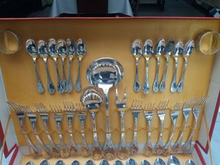ENSEMBLE DE COUVERTS A POISSON se composant de : . 12 couteaux longueur 21 cm en inox . 12 fourchettes longueur 21 cm en inox Excellent état. Disponibles sur LILLE (secteur Cl