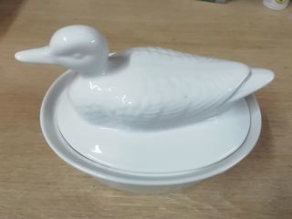 Bonjour, terrine neuve marque Menastyl. Pour pâté, canard, foie gras et autre. Matière gré, faïence. Plat ovale, longueur 18 cm, hauteur 7 cm. Passe au four, micro ondes, lave vais
