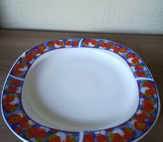 ASSIETTE VINTAGE décor fraises FAIRE OFFRE / une ébréchure (voir photos) / dimensions : 25 x 25 cm /envoi possible Info : annonce sur site = article disponible