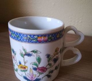 2 MUGS (GL, décor déposé) FAIRE OFFRE / 1 des 2 mugs comporte une petite ébréchure (voir photo) / hauteur 9,5 cm / diamètre 8,5 cm / bol / tasse / déjeuner / envoi possible